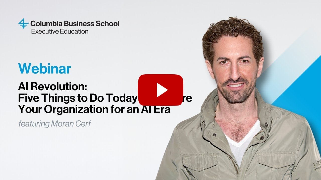 Moran Cerf is the academic director at Columbia Business School Executive Education and a leading voice in AI adoption and implementation.